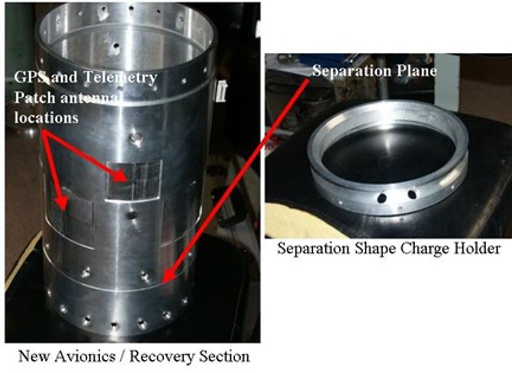 · A new replacement Avionics / Recovery section was developed and is currently being machined. The G10 section is being replaced after continued concerns about its structural margins at high temperatures prompted the change in February. The new part is made entirely of aluminum and is made possible by the Avionic